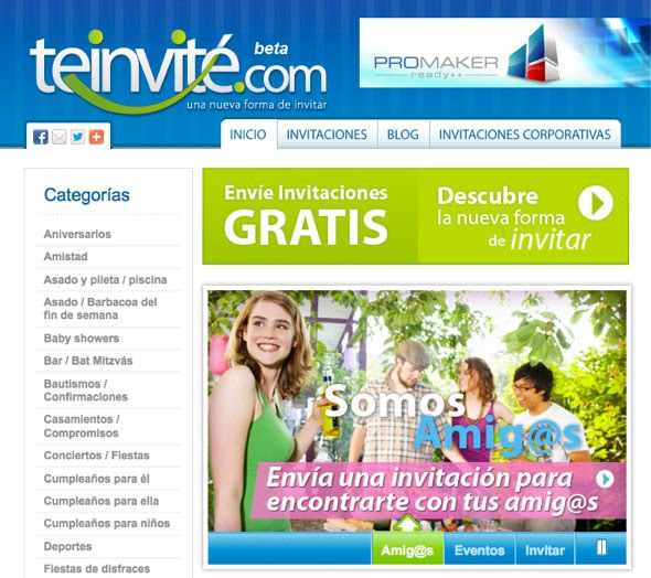 Teinvité.com es un nuevo sitio que nos permite enviar invitaciones online a todos nuestros amigos, sea para el evento que sea y de forma totalmente gratuita.